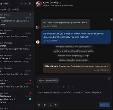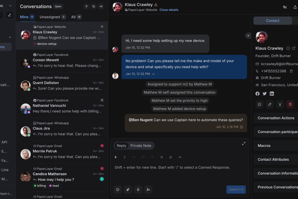 Get a centralized view of all your conversations, with a Kanban-style layout.